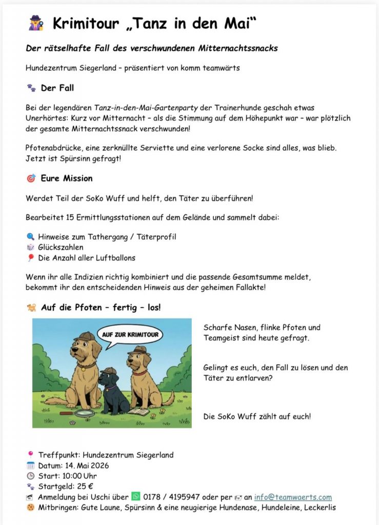Spürnasen auf zwei und vier Beinen aufgepasst! Am 14. Mai gibt es eine neue Krimitour.